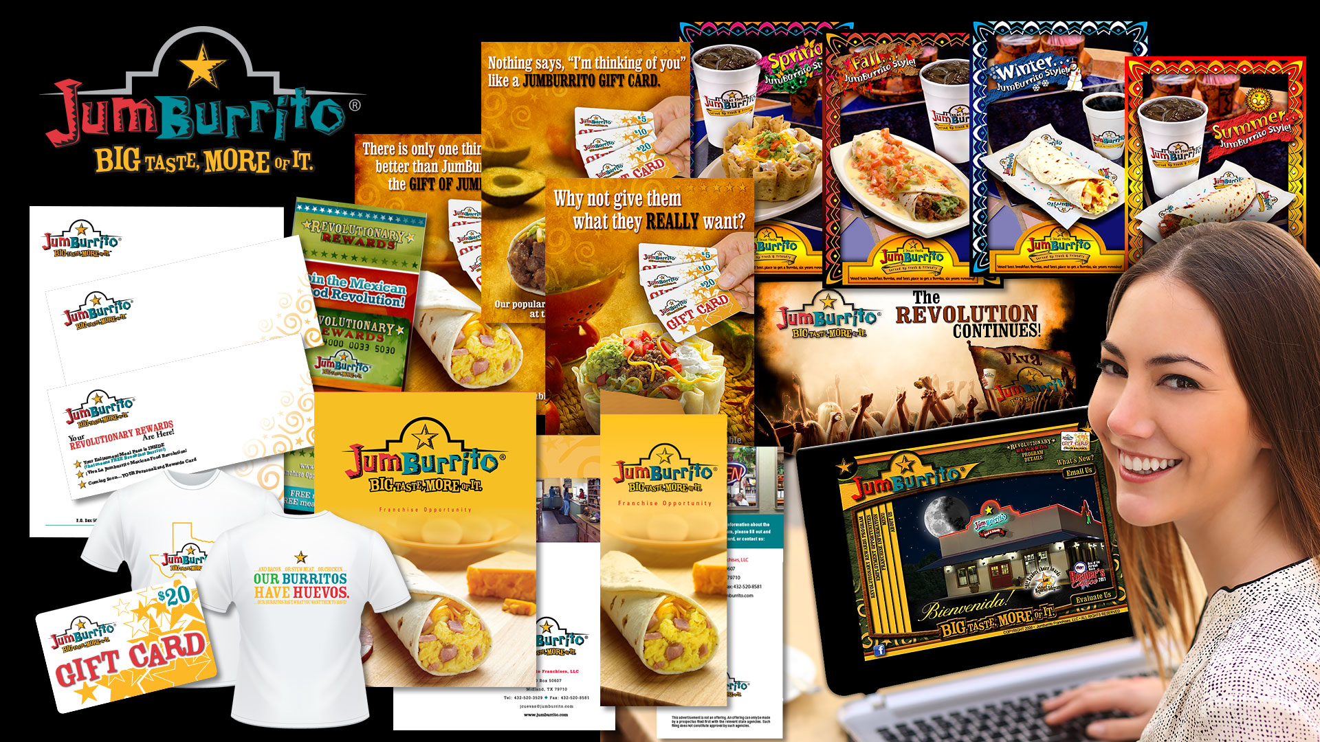 [Client Provided Existing Logo] - Stationery, Mag-Strip Gift Cards, Mag-Strip Rewards Cards and Carriers, Wall Placards, Franchise Brochures, POS Placards, Post Cards, Print Ads, Backlit Duratrans, Custom FLASH Website